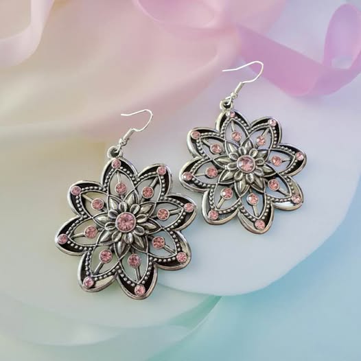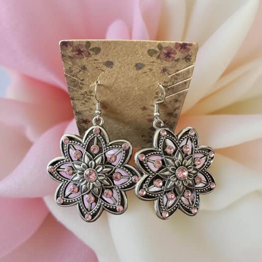 Sold outBRASS PINK FLOWER MINI EARRINGS