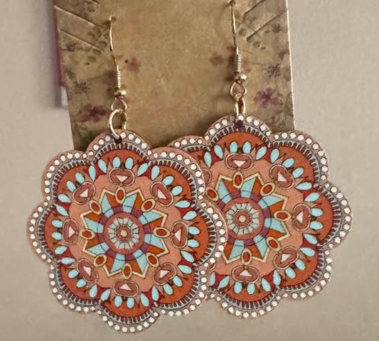 Sold outTAN MULTI COLOR FLOWER WOOD EARRINGS