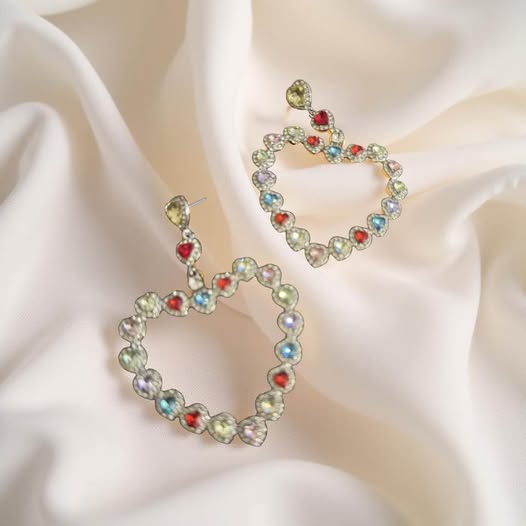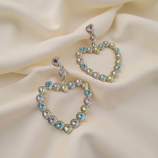 MULTI COLOR RHINESTONE LARGE HEART EARRINGS