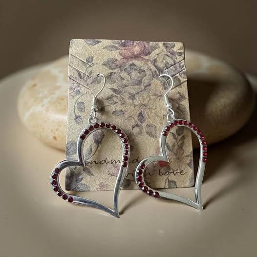 RED RHINESTONE HEART EARRINGS