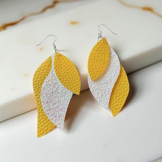 LEATHER YELLOW/MERMAID EARRINGS