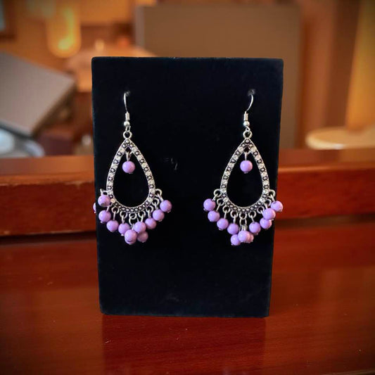 PURPLE BEAD TEAR DROP EARRINGS