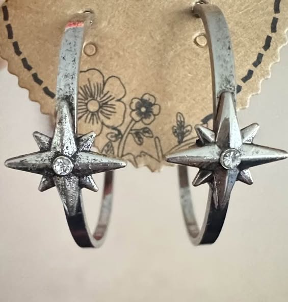 These super sleek silver star hoops add a playful sparkle with a small rhinestone nestled in the center of each star. Lightweight and vibrant, they’re the perfect accessory to brighten your day and elevate any look with a touch of cosmic charm.