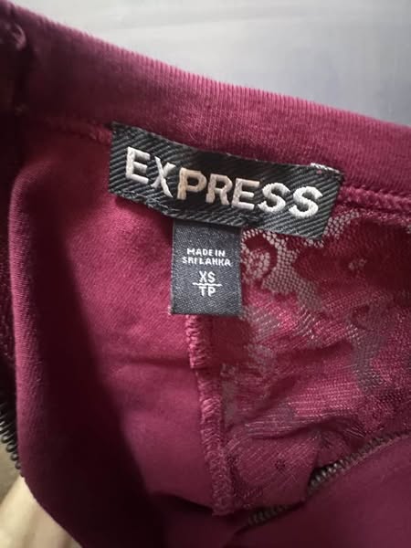 This playful wine-colored blouse features delicate lacy sleeves and a convenient back zipper for easy wear. With a stretchy fabric that hugs comfortably, it measures 24 inches long, 15 inches wide across the chest, and has 20.5-inch sleeves—perfect for adding a flirty touch to any outfit.