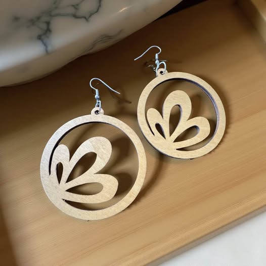 Bring a touch of nature’s charm to your look with these playful wood earrings. Lightweight and comfortable, each earring features a natural wood base crowned with delicate flower petals at the center, adding a sweet and whimsical detail. Perfect for everyday wear or special moments when you want to keep things effortlessly cute and breezy.