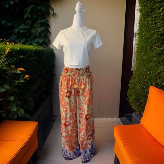 Elevate your style with our 70's Vibes Pants! These wide leg pants feature a comfortable elastic waist, perfect for channeling your inner hippie. With vibrant colors and a trendy design, you'll be sure to stand out in these must-have pants. Embrace the retro look and add these to your wardrobe today! 39 inches in length, inseam 28 inches in length