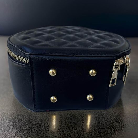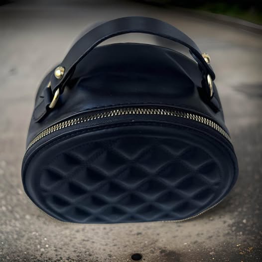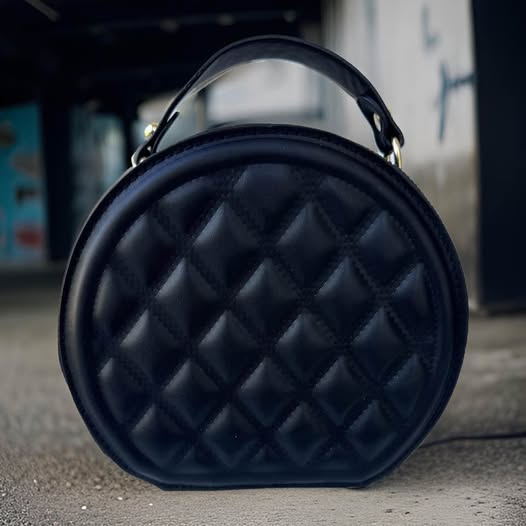 This Black Quilted Purse features a unique round design, accented with gold details. With a convenient strap for a cross body look, this purse combines style and functionality. Perfect for any occasion, it's a must-have accessory for any fashion-forward individual.