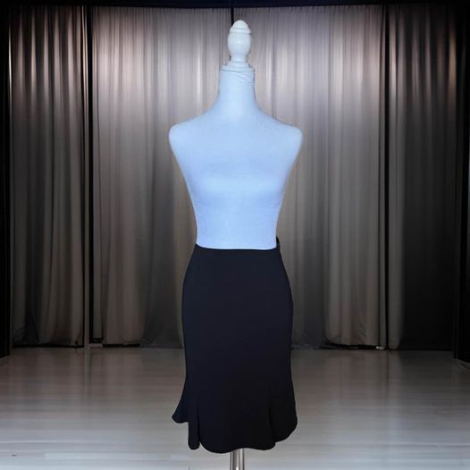 This sleek Black Skirt features elegant pleats at the bottom, with a length of 23 inches and a waist of 28 inches. The high-quality lining, made of 71% Triacetate and 29% Polyester, ensures a comfortable and sophisticated fit. Perfect for any formal or professional occasion.