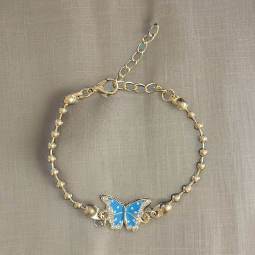 This blue butterfly bracelet is crafted with lightweight materials to ensure maximum comfort for all day wear. The graceful design adds a subtle yet beautiful accent to any outfit. Perfect for you or your little girl.