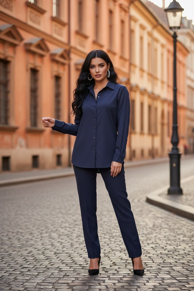 This playful blue button-down shirt in size L offers effortless style with no ironing needed! It measures 28 inches in length and 24 inches from armpit to armpit for a comfy fit. Previously owned with the tag removed, it’s ready for its next adventure with you—fresh, fun, and easygoing.
