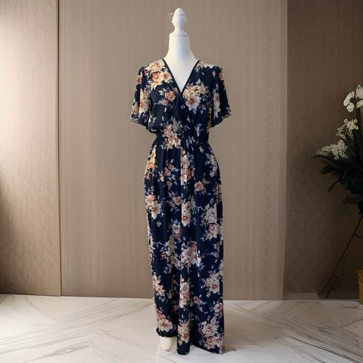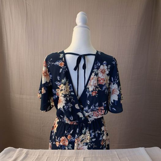 This Blue/Pink Floral Romper is the perfect addition to your wardrobe. Its super cute floral design is perfect for any springtime occasion, whether it's a garden brunch or lunch with the girls. Its versatility and style make it a must-have for your collection. Waist is stretchy so it fits most. From shoulder to hem 58 inches, inseam 28.5 in length, waist 28 inches without stretching