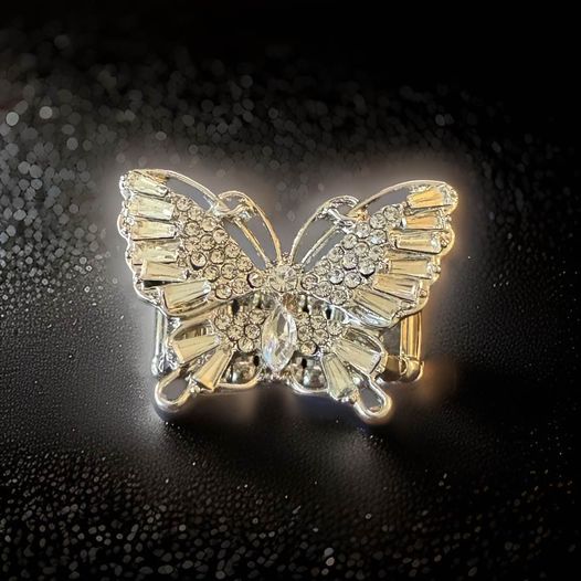 Introducing the stunning Butterfly Ring. silver and adorned with rhinestones, this ring is both elegant and versatile with a stretchy band that fits all sizes. Stand out and be the envy of all with this super cute accessory.