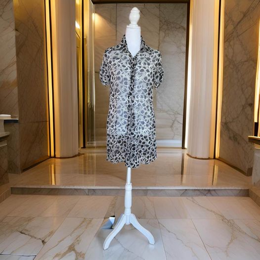 Expertly crafted for elegant occasions, the Circle Black & White Dress is a sheer, must-have addition to your wardrobe. With a length of 31 inches and arm pit to arm pit of 18.5 inches, this dress exudes sophistication and grace. Don't forget to pair it with a slip this dress is sheer.