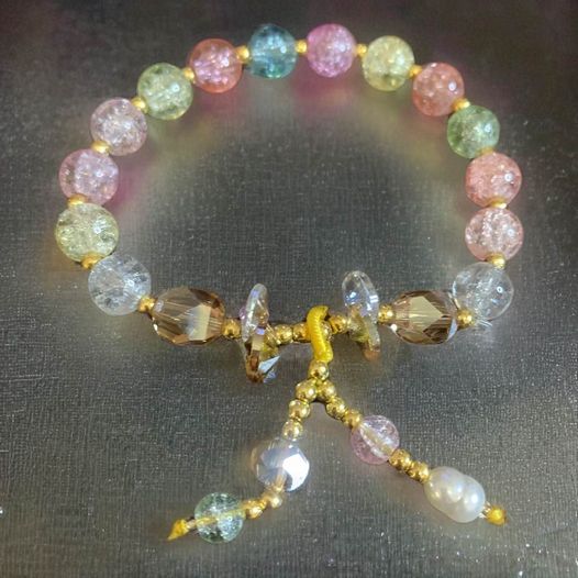 This Colorful Beaded Bracelet features beautiful colors that look like crystals. Its stretchy design will fit all size wrists and is set on a gold setting, making it suitable for both casual and dressier occasions.