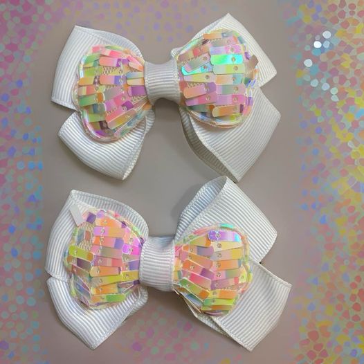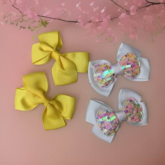 Introducing our Cute Hair Bows, the perfect accessory for your little girl. Made with high-quality materials, these bows come in yellow or white and feature an iridescent center for a touch of sparkle. Keep your little one looking cute and stylish with these must-have hair bows.