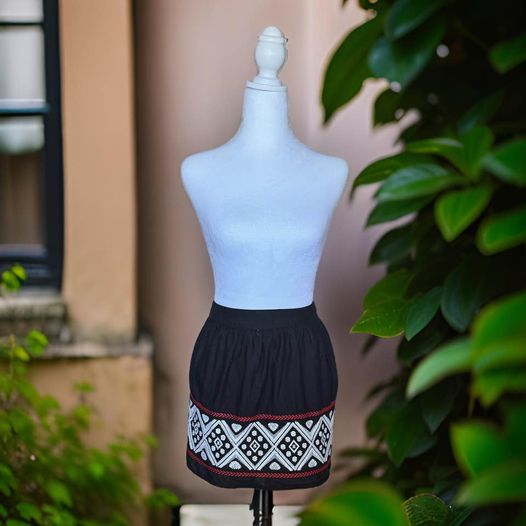 Stand out from the rest in this super stylish and unique embroidered skirt. Featuring a stunning black, white, and red design, this skirt is perfect for making a statement. With a size M, zipper in the back, and a waist of 30 inches, Length 16 inches, it's both fashionable and comfortable. Upgrade your wardrobe with this must-have piece.