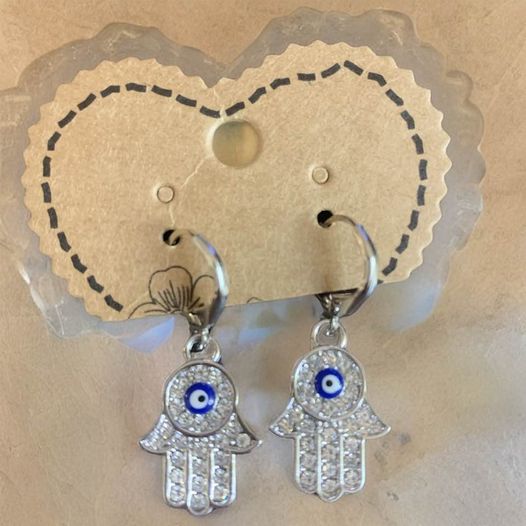 These petite silver Evil Eye in Hand Earrings are the perfect accessory for any outfit. Crafted with a versatile design, they can be dressed up or down to add a touch of elegance and sophistication to any wardrobe.