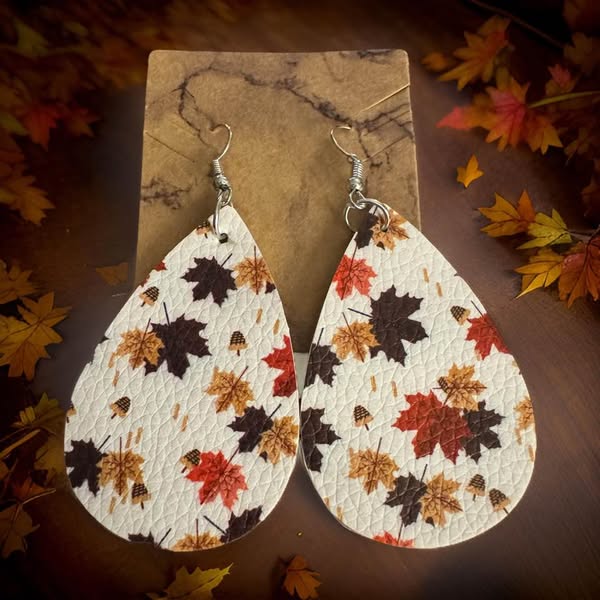 Experience autumn in style with our FALL LEAVES leather earrings. These super cute holiday earrings are the perfect accessory for the fall time. Made with high-quality leather, they add a touch of warmth and charm to any outfit. Celebrate the season with our FALL LEAVES earrings.