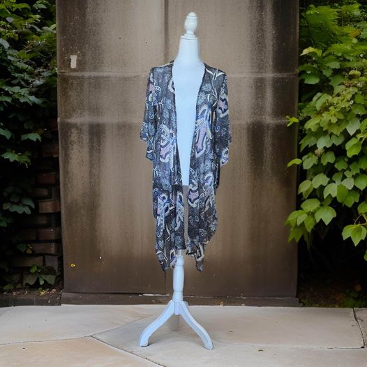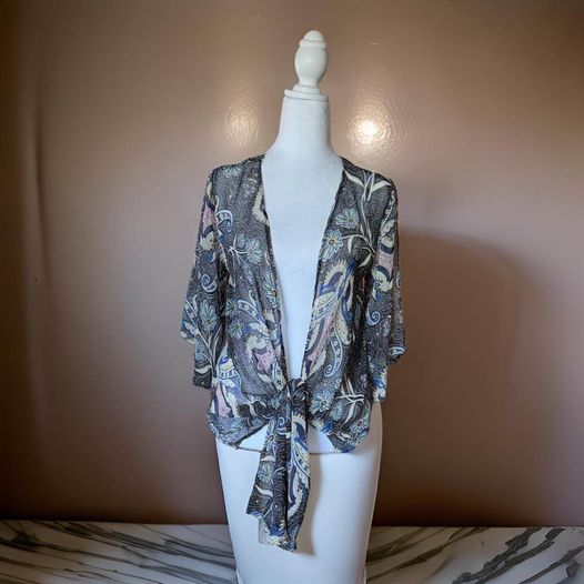 Introducing our Floral Cover Up Size M, perfect for any occasion! Made with a sheer material and a beautiful floral design, this cover up can be dressed up or down and even has ties in the front. Stay stylish and effortlessly chic with this versatile piece.