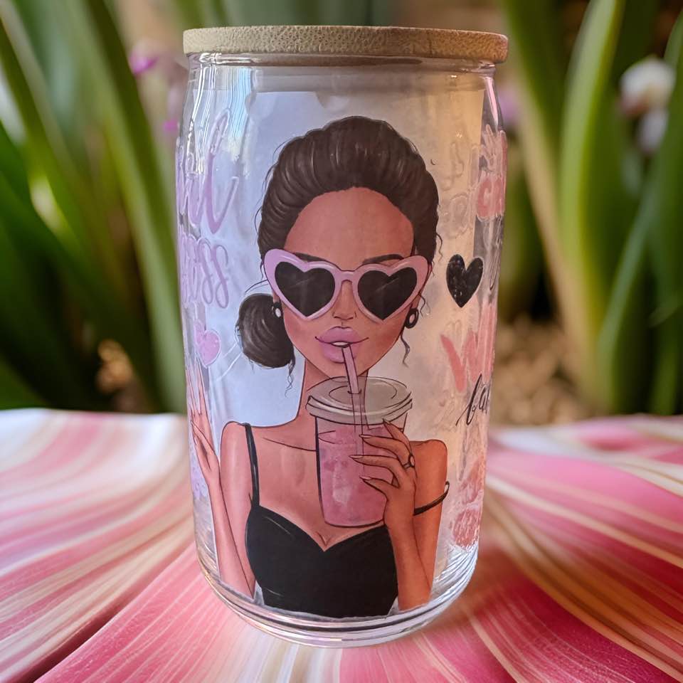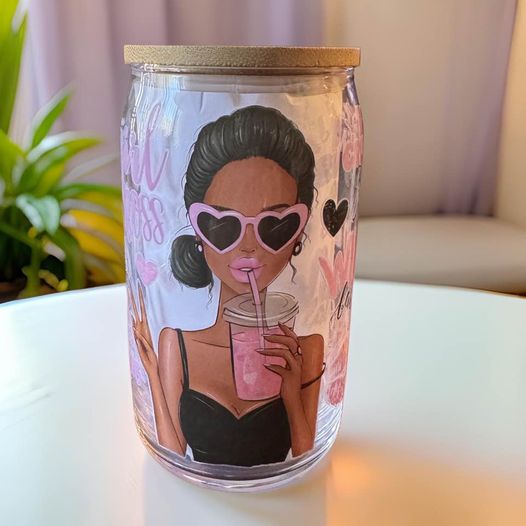 Become the ultimate #GirlBoss with this stylish and functional 16oz glass cup. Stay hydrated and on-trend with this super cute accessory that will make all your colleagues envious. Made with high-quality glass, it's perfect for any busy boss babe on-the-go. Stay fashionable and hydrated with Girl Boss. Choice dark skin or brunette