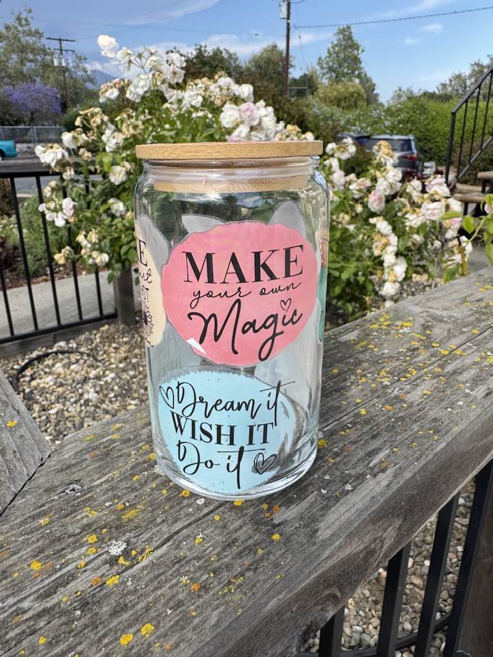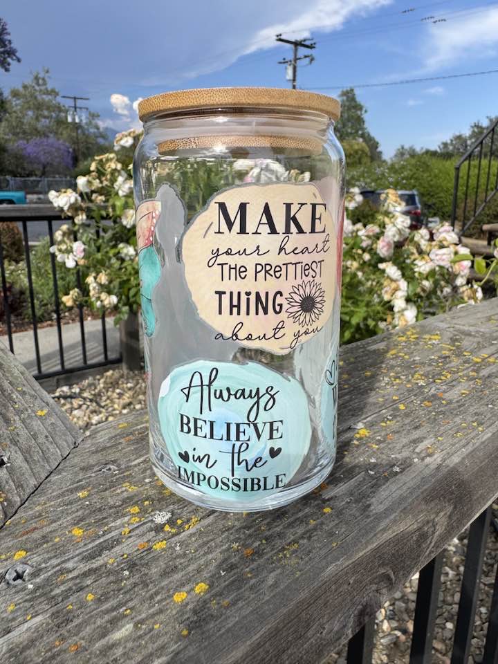 Flutter into fun with this adorable 16oz "Give Yourself Wings" glass cup! Each comes with its own glass straw for sip-tastic hydration adventures. We've knocked the price down because of a teeny imperfection, but honestly? It just adds to the charming distressed vibe! Think of it as your cup's unique beauty mark – perfectly imperfect, just like the rest of us! Spread your wings and save some cash!