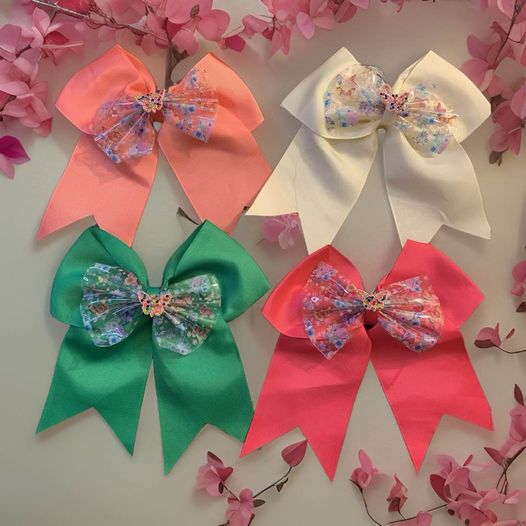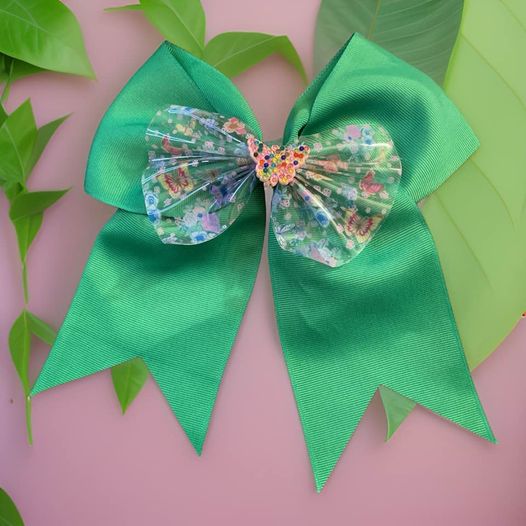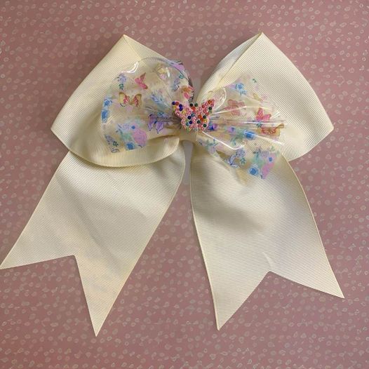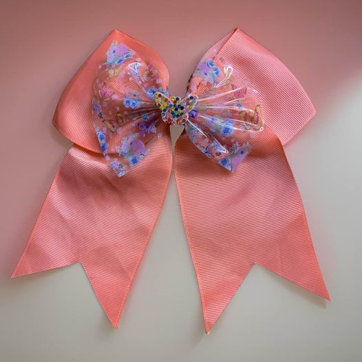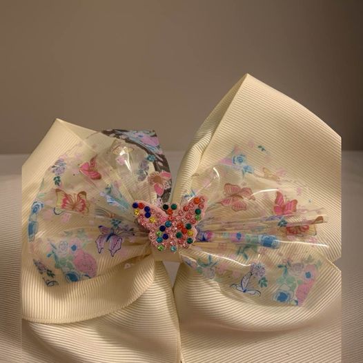 Add a pop of color to your daughter's hair with our Large Hair Bows. Featuring a beautiful large bow with a smaller bow in the middle and a colorful butterfly, these bows are a must-have for any little fashionista. Perfect for any occasion, our bows are attached to an alligator clip for easy wear and stunning style. Bow size 1 1/2 x 8