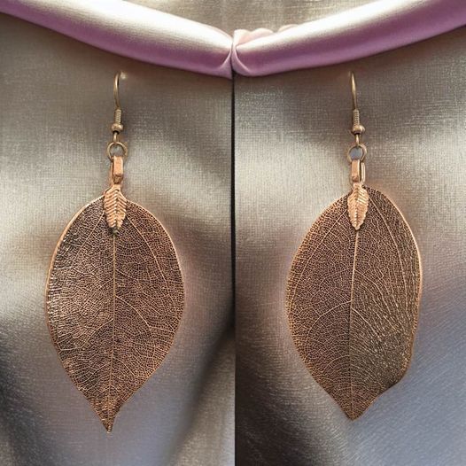 These Leaf Earrings capture the beauty of nature. Crafted with Cooper or Rose Gold for a unique look, they are light weight and stylish. Dress up for a special occasion or dress down for everyday wear.