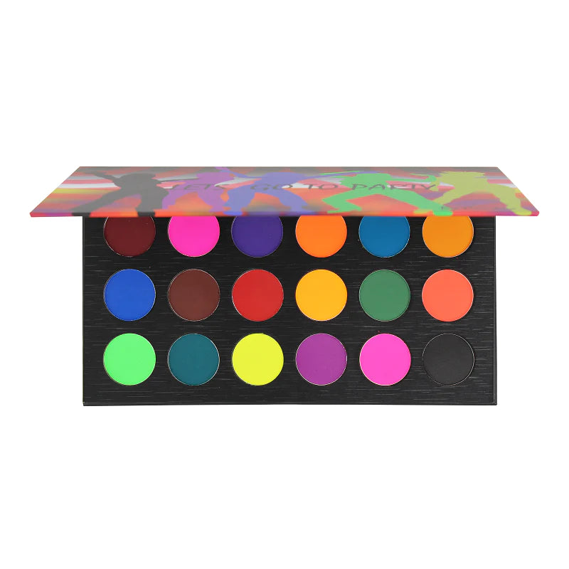 The Let's Go To Party palette features 18 highly pigmented shades, perfect for creating artistic and bold looks. intensely bold colors, there is an array of options to explore. Achieve a powerful eye look that won't fade or crease for all-day wear.