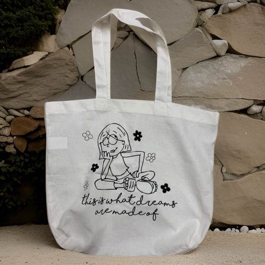 Lizzie is the perfect tote bag for young girls or fans of the character. This bag is white and black. Size 16x17 Round at the bottom