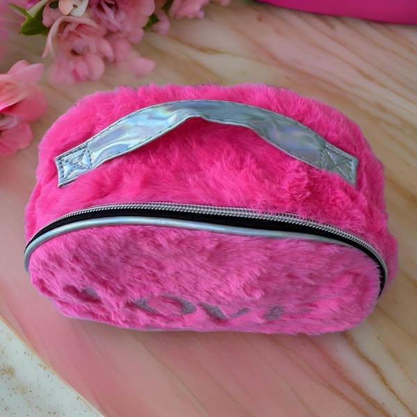 This LOVE HOT PINK MAKEUP BAG is perfect for travel and features a HOT PINK SUPER CUT FUZZY design in a sleek combination of HOT PINK and GREY. Stay organized with style and ease with this lightweight, durable and chic bag.
