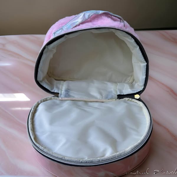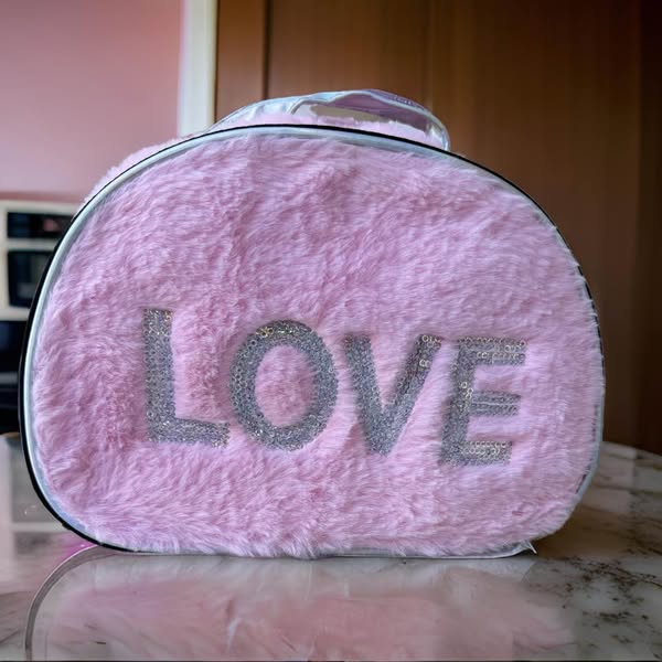 Keep your makeup organized and secure while on the go with our Love Pink Fuzzy Makeup Bag. This super cute bag features a soft and fuzzy design in pink and grey, perfect for travel. Stay stylish and organized with this must-have makeup accessory.