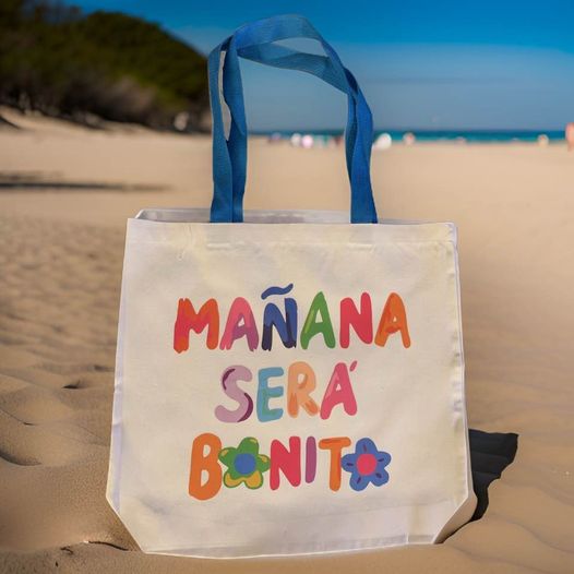 Introducing the Manana Sera Bonito bag, perfect for Karol G fans! Featuring ocean blue straps, this bag is not only super cute, but also stylish and trendy. Show off your love for Karol G while carrying your essentials with ease. Upgrade your look with this must-have accessory. Measures 15.7x15