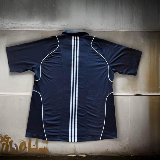 This preowned Adidas shirt is a must-have for any man's wardrobe. Made with lightweight material, it offers superior comfort while still maintaining a sleek and stylish look. Its pinstriped design on the back adds a touch of sophistication. Measuring at 30 inches in length and 24 inches armpit to armpit, it provides a perfect fit for any occasion. Upgrade your wardrobe with this high-quality shirt.