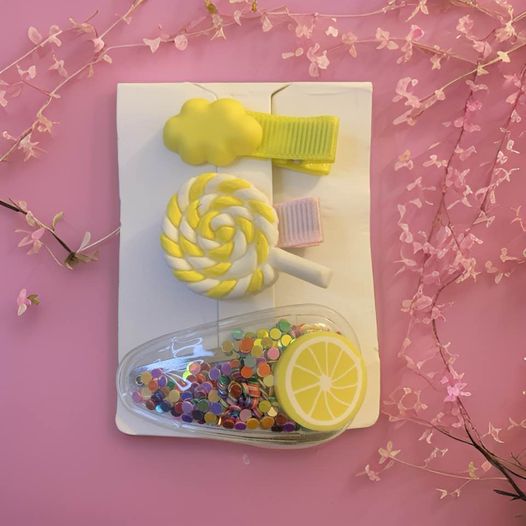 Add some fun and style to your little girl's hair with our Mini Assorted Hair Clips! Featuring super cute yellow designs of a cloud, lollipop, and lemon with confetti, these clips are perfect for adding some playful flair to her outfit. Made with quality materials, these clips are both durable and adorable.