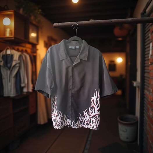 This bold black button-down shirt in XXL brings the heat with vibrant flame designs that turn heads wherever you go. Measuring 33 inches long and 27 inches wide, it offers a relaxed, comfortable fit that’s perfect for standing out with a fiery edge. Add some playful attitude to your wardrobe and let your style blaze bright with this standout shirt!