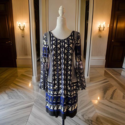 This XS-sized Multi Blue Dress is both unique and stylish, featuring a beautiful back design that will surely turn heads. The stretchy fabric ensures a comfortable fit while the flowy sleeves add a touch of elegance. Stand out from the crowd with this one-of-a-kind dress. waist 34 inches Length 36 inches