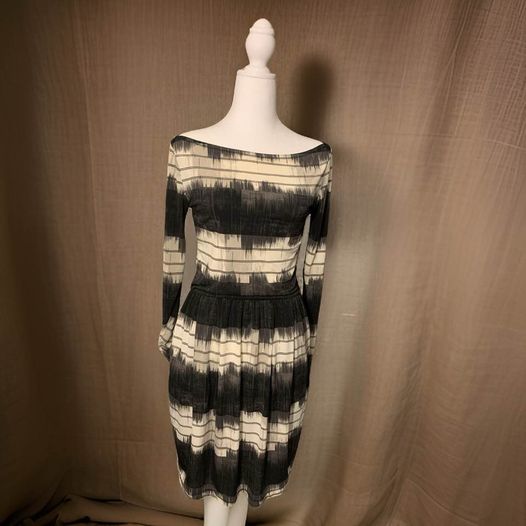 Experience sophistication and style with our Multi Dress by Rachel Roy. This beautiful, classy dress features pockets for convenience and a sleek, elegant design with an elastic waist. The slightly off-the-shoulder neckline adds an extra touch of elegance. Perfect for any occasion. From shoulder to hem 35 inches, waist without the stretch 26 inches