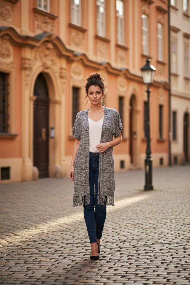 Add a fun twist to your outfit with this multi-grey short sleeve cardigan! Featuring playful tassels at the bottom and a front clasp, you can wear it open for a breezy look or closed for cozy vibes. At 33 inches long, it’s perfect for layering with your favorite tops—effortlessly cool and ready to brighten your day.