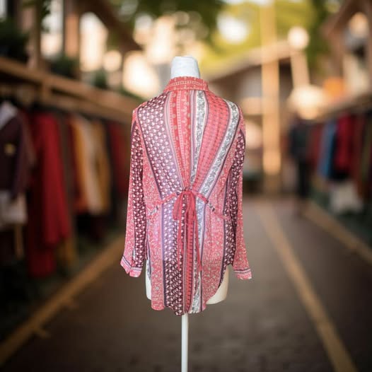 This vibrant multi-orange blouse brings a splash of color with a playful fit! Measuring 20 inches from armpit to armpit, it offers a comfortable size S fit. The front length is a flattering 25 inches, while the back flows longer at 29 inches. Adjustable ties at the back let you customize the fit just right, making it perfect for mixing style with comfort.