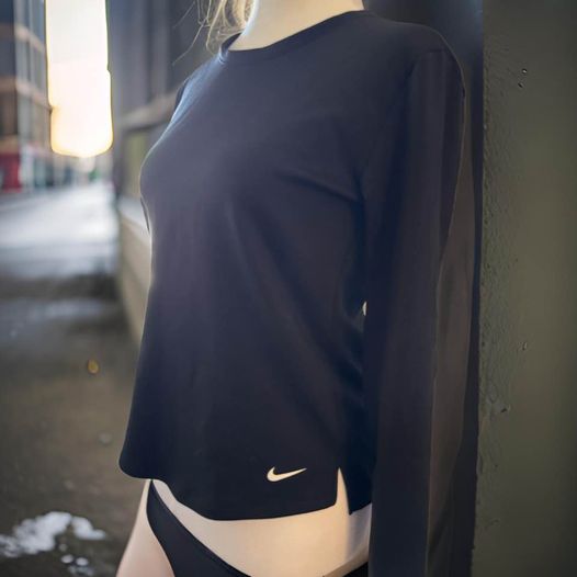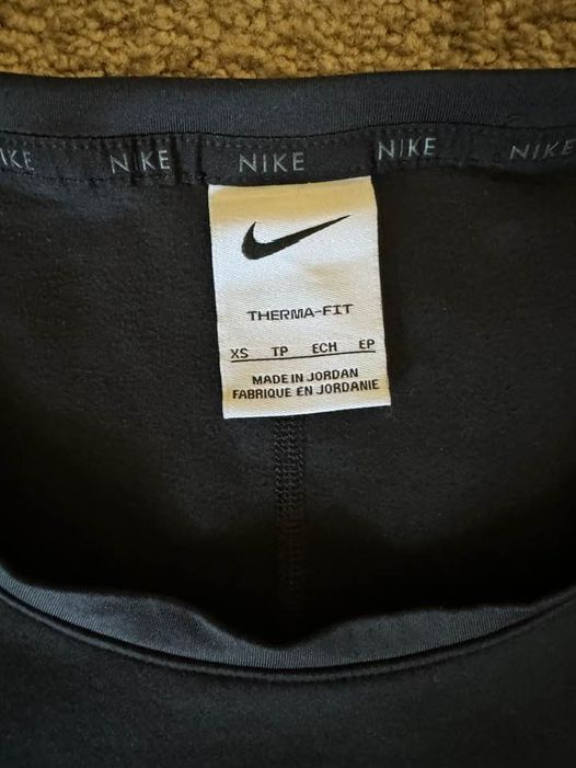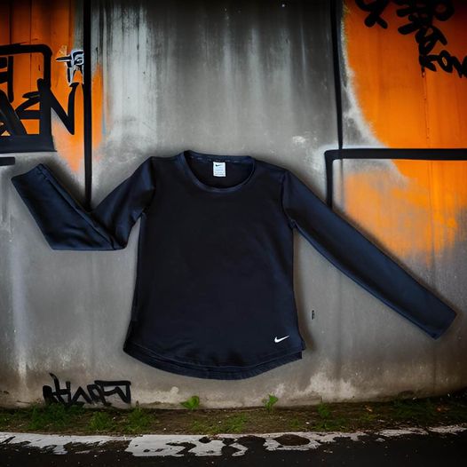 Introducing Nike Therma Fit, the perfect black shirt for your next hike or gym session. Made with the signature Therma fit fabric, it provides optimal warmth and flexibility in a sleek and stylish design. Available in XS with a curved hem and small slit details.