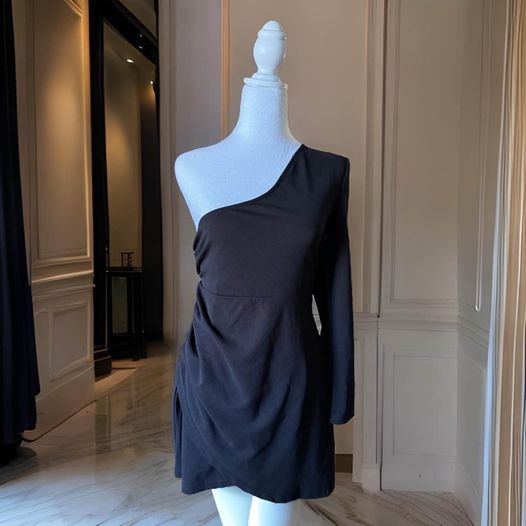 The perfect addition to any wardrobe, this Off the Shoulder Black Dress is a must-have for any fashion-forward individual. Its sexy off the shoulder design and convenient side zipper make it a stylish and effortless choice for any occasion. Available in size M. waist 26 with a bit of stretch- from shoulder length 33 inches