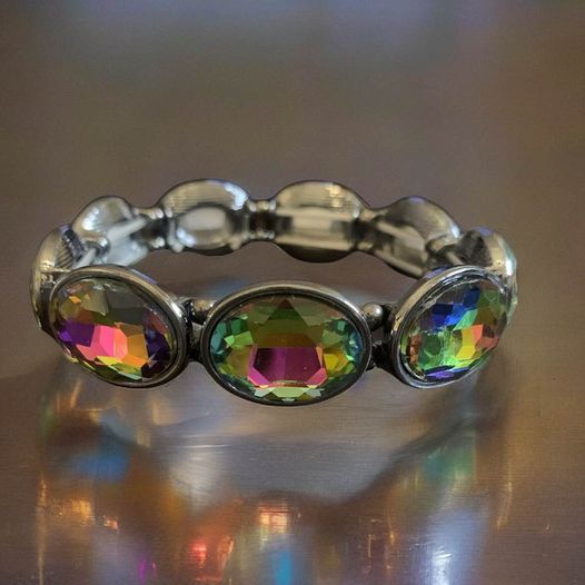 This elegant Oil Spill Bracelet is made from dark silver. Its stretchy design means it fits comfortably on all wrists. Get the perfect look of sophistication with this classy piece of jewelry. your choice of round or oval shape