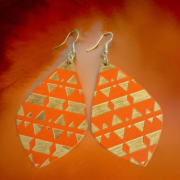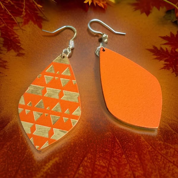 Introducing our new ORANGE WOOD EARRINGS, perfect for dressing up or down during the fall season. Made from lightweight and unique orange wood, they offer a one-of-a-kind look. Elevate any outfit with these earrings that effortlessly combine style and comfort.