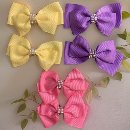 Enhance your little girl's hairstyle with our colorful hair bows. These stylish bows feature sparkling rhinestone centers and a secure alligator clip, keeping her hair in place all day. With a variety of colors to choose from, she'll shine in every outfit. Perfect for any occasion.