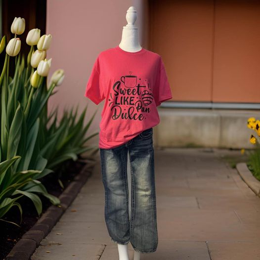 Add a pop of color to your wardrobe with this hot pink t-shirt! With the playful phrase "Sweet like pan dulce," this super cute shirt is perfect for any sweet-loving fashionista. Made from high-quality fabric, you'll love the comfortable, stylish fit of this must-have tee.