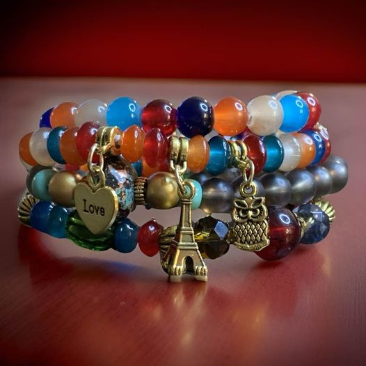 Add a touch of sophistication to your ensemble with the Paris Multi Stone Bracelet. This elegant piece features vibrant stones, accompanied by chic accents such as the iconic gold Eiffel Tower, heart, and owl. Whether you're dressing up for a special event or adding some flair to everyday wear, this bracelet is a must-have for the fashion-forward individual. Complete your look by stacking it for a bold statement.