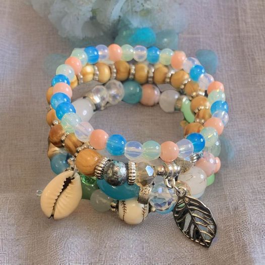 This beautiful Stackable Bracelet is the perfect way to show your style with its unique combination of pastel beads and a seashell and leaf charm. It stands out from the crowd with its eye-catching design for a one-of-a-kind look.