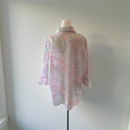This playful top shines with its very lightweight, transparent fabric in a delightful mix of pastel colors. With a length of 28 inches and a 24-inch arm-to-arm measurement, it offers a relaxed, airy fit. The button-down style adds a fun, casual vibe perfect for layering or wearing on its own for a splash of color.