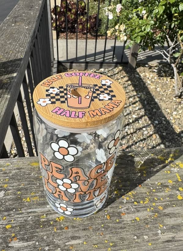 Sip in style with our adorable 16OZ PEACE LOVE LATTE GLASS CUP! This trendy cup comes with its very own glass straw—perfect for enjoying your favorite beverages while being kind to the planet. The eye-catching design will have everyone asking where you got such a cute cup! Our standard lid features fun decorative elements, but if you prefer to keep things simple, just ask for a plain lid instead. Make hydration happy and turn heads with this charming glass cup!