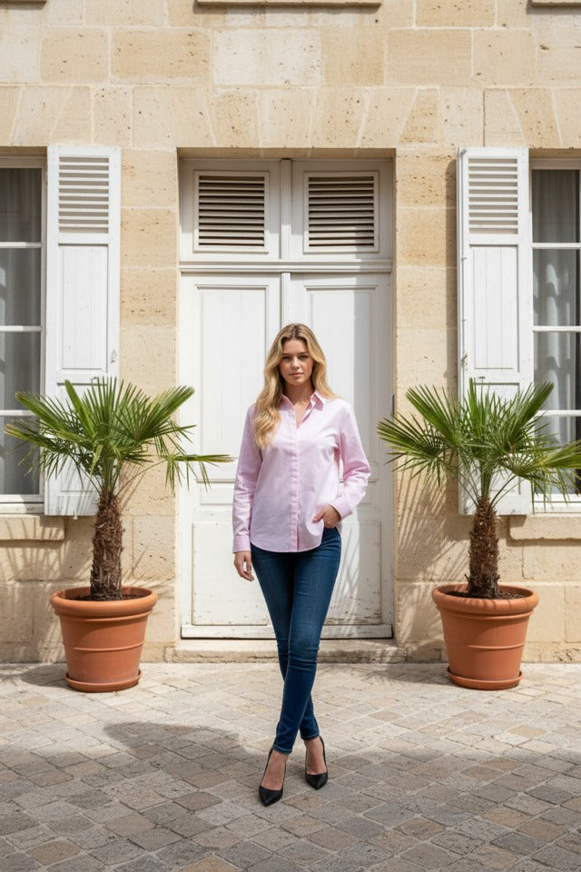 Add a splash of fun with this wrinkle-free pink button-down top in size medium (10). With a flattering 28-inch length and 20-inch width, it’s designed for comfort and style. Perfect for brightening your day and keeping you looking pretty in pink!
